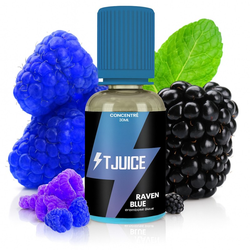 Raven Blue Aroma 30 ml - T-Juice entführt Sie in eine geschmackliche Reise mit einer erfrischenden Mischung aus blauer Himbeere, Brombeere und Waldbeeren, abgerundet durch eine intensive Frische. Perfekt für DIY-Liebhaber, die leichte und fruchtige Kreationen suchen.