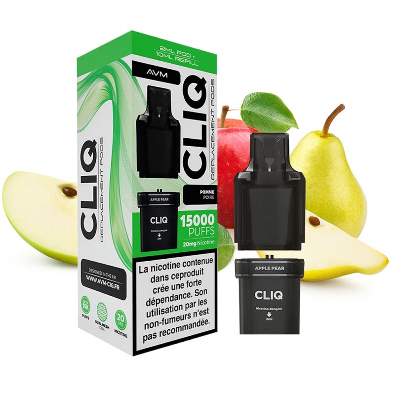 Cliq 15000 της AVM με γεύση Apple Pear συνδυάζει μήλο και αχλάδι σε ένα ελαφρύ, φυσικό και ισορροπημένο προφίλ.
