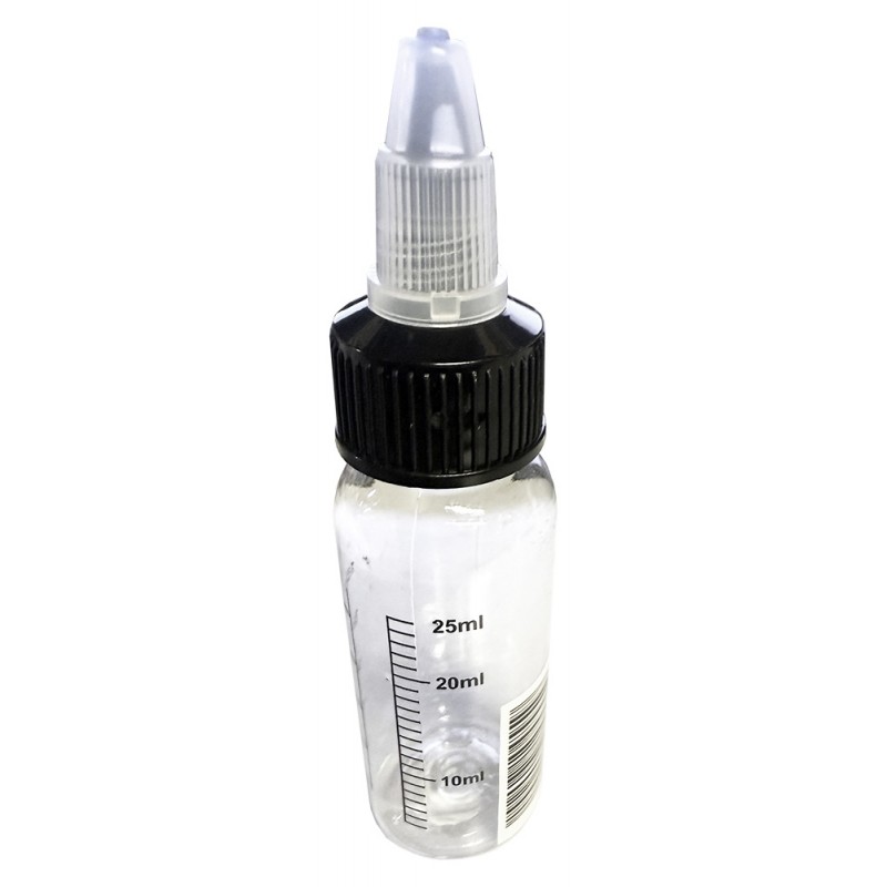 Άδειο μπουκάλι Twist χωρητικότητας 30 ml με διαβάθμιση σε χιλιοστόλιτρα (έως 25 ml) και χιλιοστόγραμμα, ιδανικό για ακριβείς μετρήσεις και ανάμειξη υγρών. Κατασκευασμένο από διάφανο και ανθεκτικό PET, πολλαπλής χρήσης. Εξοπλισμένο με σαφείς διαβαθμίσεις σε όλο το ύψος και αεροστεγές βιδωτό καπάκι με στεγανοποιητικό. Τέλειο για ανάμειξη υγρών για ηλεκτρονικά τσιγάρα.