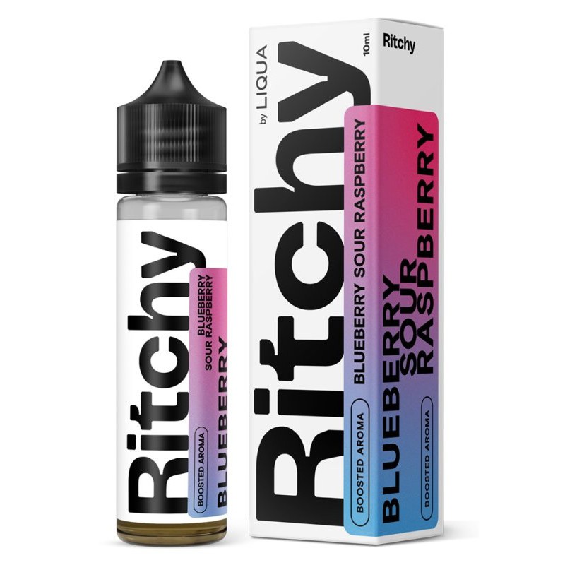 Ritchy Blueberry Sour Raspberry: έντονος συνδυασμός γλυκού μύρτιλου και ξινής φράουλας του δάσους, με ζωηρή και δροσιστική φρουτώδη αίσθηση. Φιάλη 60 ml με 10 ml άρωμα, έτοιμο σε 5 λεπτά χάρη στο Long-Fill.