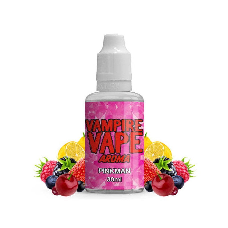 Pinkman Concentrated Aroma 30 ml - Vampire Vape delivers a fruity explosion with an irresistible blend of strawberry, raspberry, and cherry. Ideal for your DIY creations, this aroma lets you personalize your e-liquids with a sweet and balanced flavor profile.