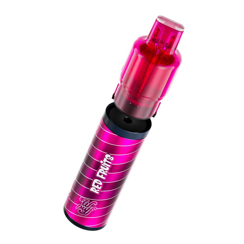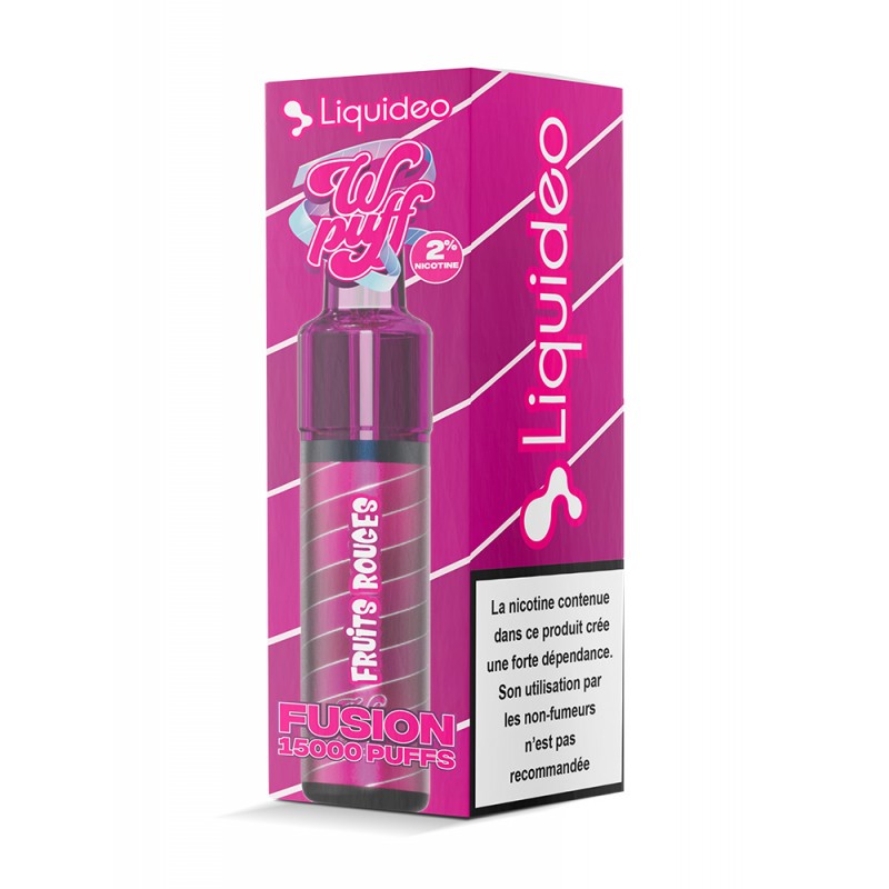 Wpuff Fusion 2ml + 10ml - Red Fruits is a rechargeable e-cigarette by Liquideo with a tangy mixed red fruits flavour. The kit includes a replaceable 2 ml cartridge and a 10 ml e-liquid bottle, providing up to 15 000 puffs. The device features a 1750 mAh battery and USB-C charging.