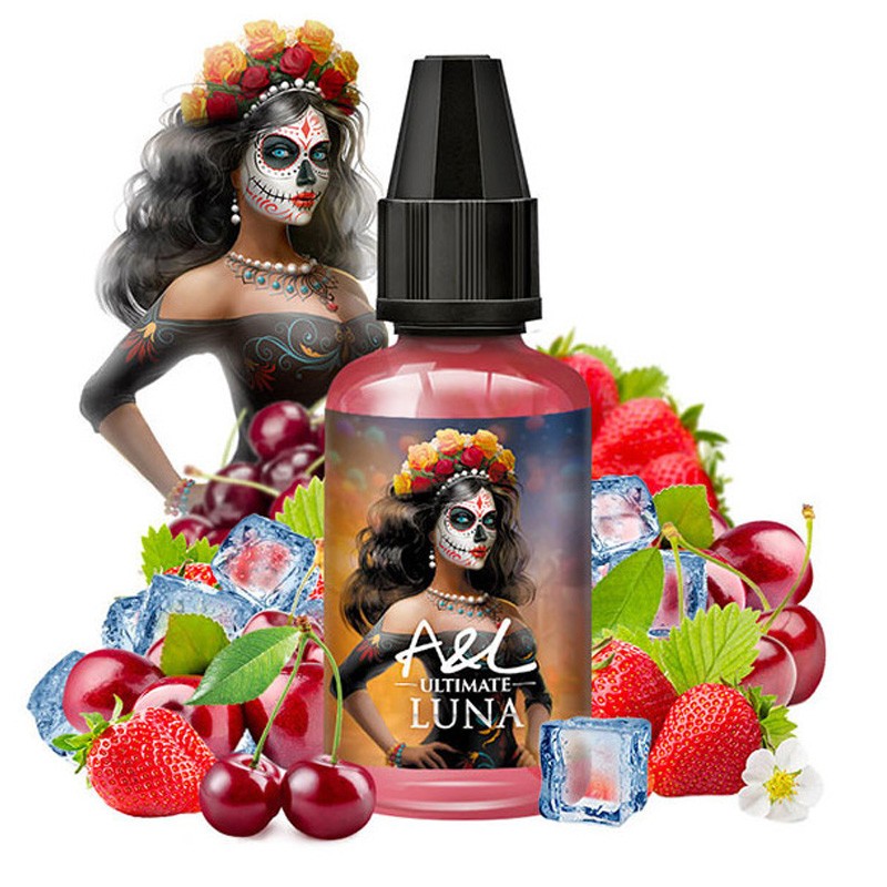 Aroma concentrado Luna Ultimate 30 ml - A&L combina la dulzura de la cereza madura con las notas jugosas de la fresa, complementadas por un toque de frescura. Perfecto para crear líquidos DIY equilibrados y afrutados.