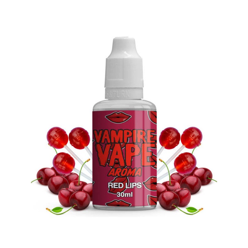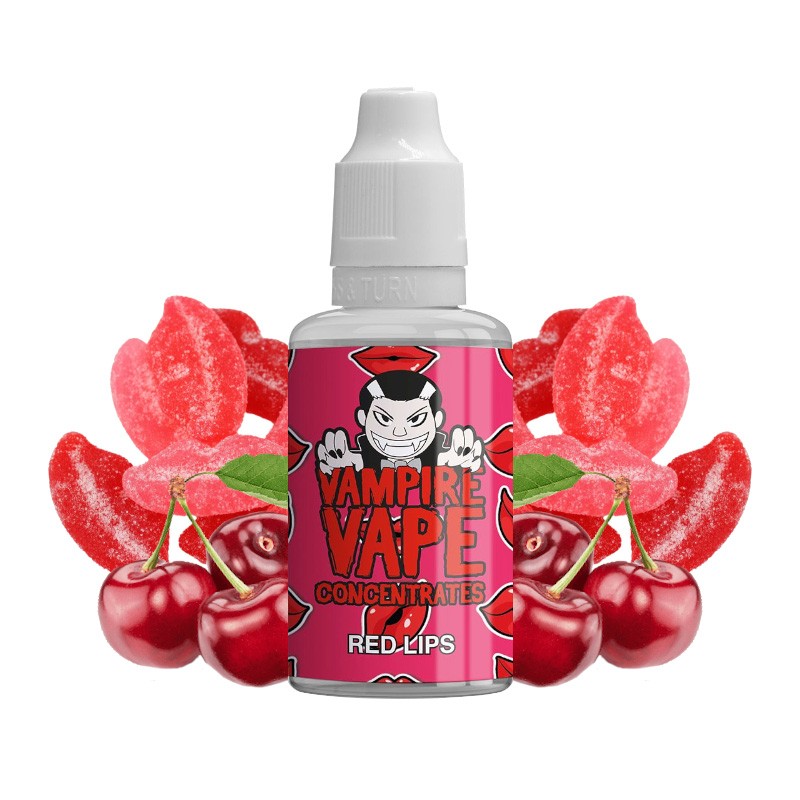 Aroma Concentrado Red Lips 30 ml - Vampire Vape combina deliciosamente cereza, frutos rojos y un toque de dulzura. Perfecto para quienes disfrutan de sabores intensos y equilibrados, este aroma es ideal para personalizar tus líquidos DIY.