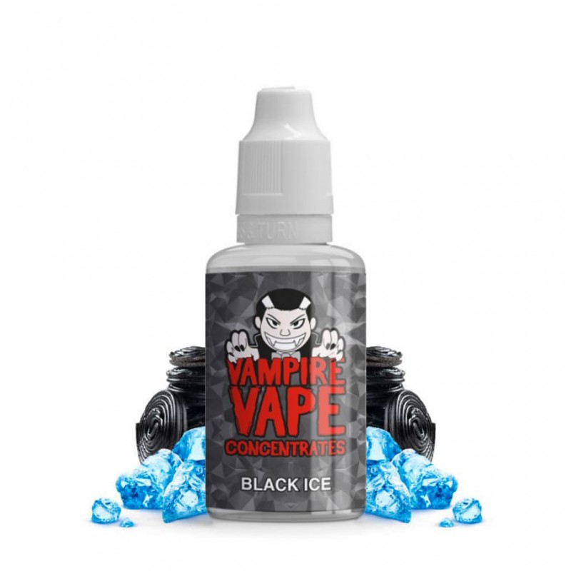 Aroma concentrato Black Ice 30 ml - Vampire Vape offre una combinazione audace e rinfrescante di anice intenso e menta ghiacciata. Questo concentrato è perfetto per chi cerca un'esplosione di freschezza con un carattere unico, ideale per creare liquidi DIY.