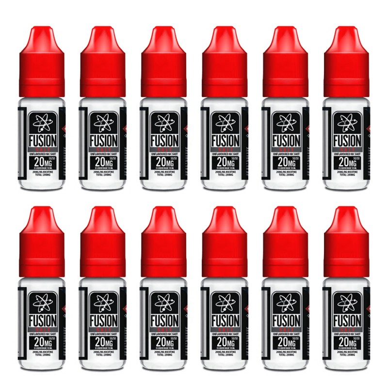 Ontdek de nicotine salt booster HALO Fusion 20 mg/ml, perfect om je e-liquids te versterken met nicotine. Verkrijgbaar in een handige verpakking van 12 flessen, met een verhouding van 50PG/50VG, ideaal voor een zachte throat hit en snelle nicotineopname.