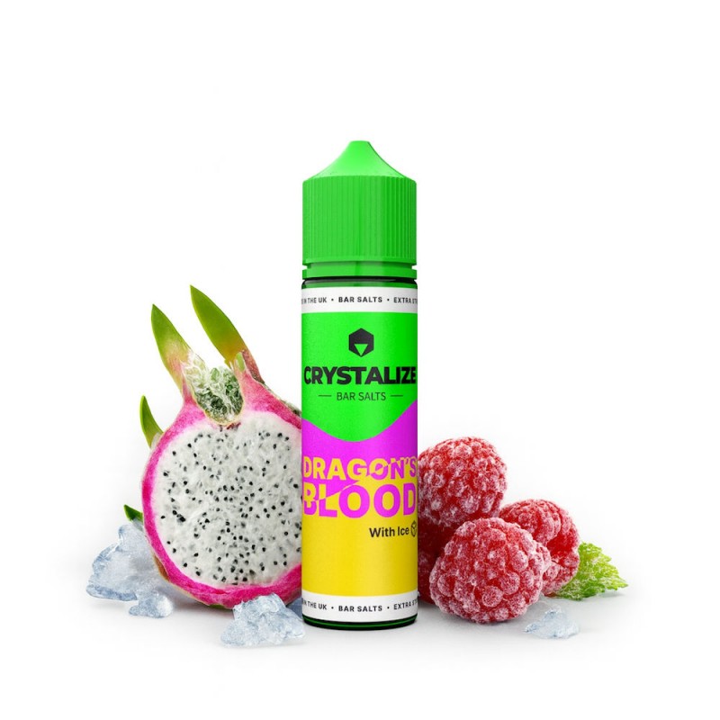 Ontdek Long-Fill Aroma Dragons Blood Ice van Crystalize: een unieke en gedurfde combinatie van zoete rode vruchten, exotische drakenfruit en ijzige frisheid voor een uitzonderlijke damp-ervaring.