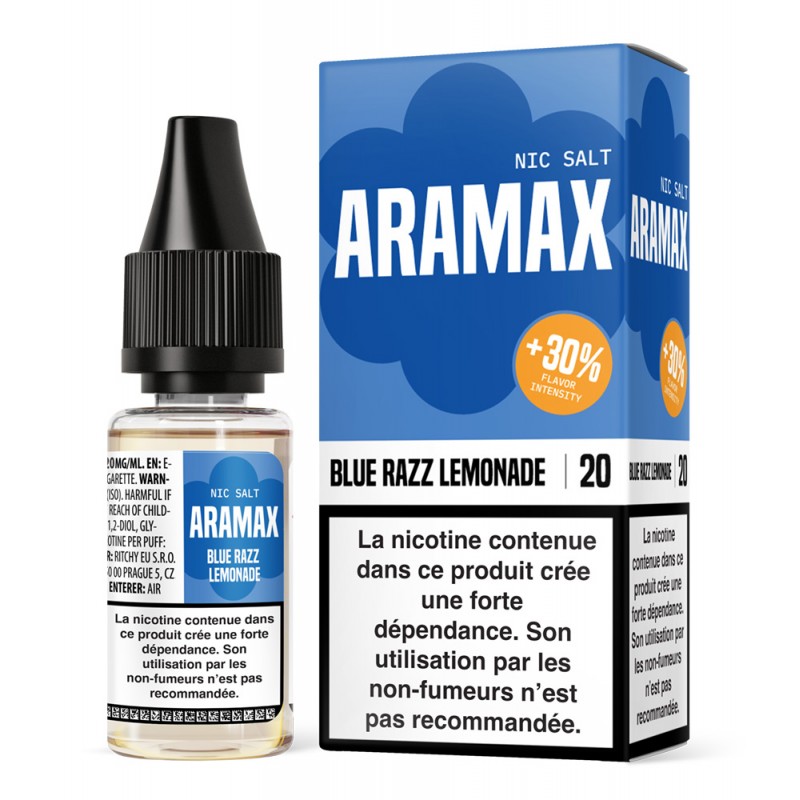 Descubra Aramax Blue Razz Lemonade com sais de nicotina: uma mistura refrescante de framboesa azul agridoce e uma limonada efervescente. Conteúdo: 10 ml. Proporção PG/VG: 50/50. Disponível em vários níveis de nicotina.