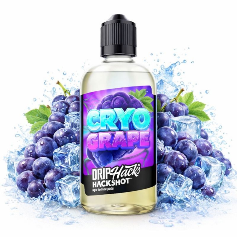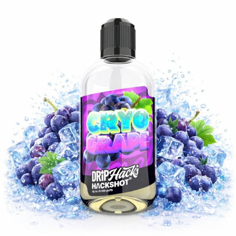 Long-Fill Ароматизатор Cryo Grape - Hackshot: освежающий микс сладкого винограда и ледяной свежести. Флакон 250 мл с 50 мл ароматизатора. Рекомендуемая дозировка: 20 %. Время настаивания: 3–7 дней.